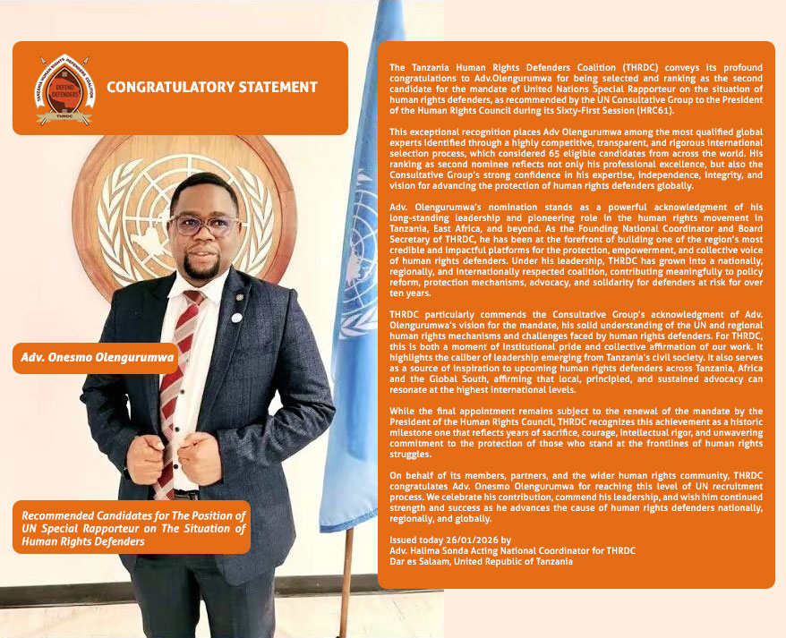 The Tanzania Young Human Rights Defenders (YHRDs) and Graduate Mentorship Program aim to empower and enhance work-related skills for Tanzanian graduates and young human rights defenders aspiring to work with human rights organizations, human rights institutions, justice institutions, and civil society organizations.